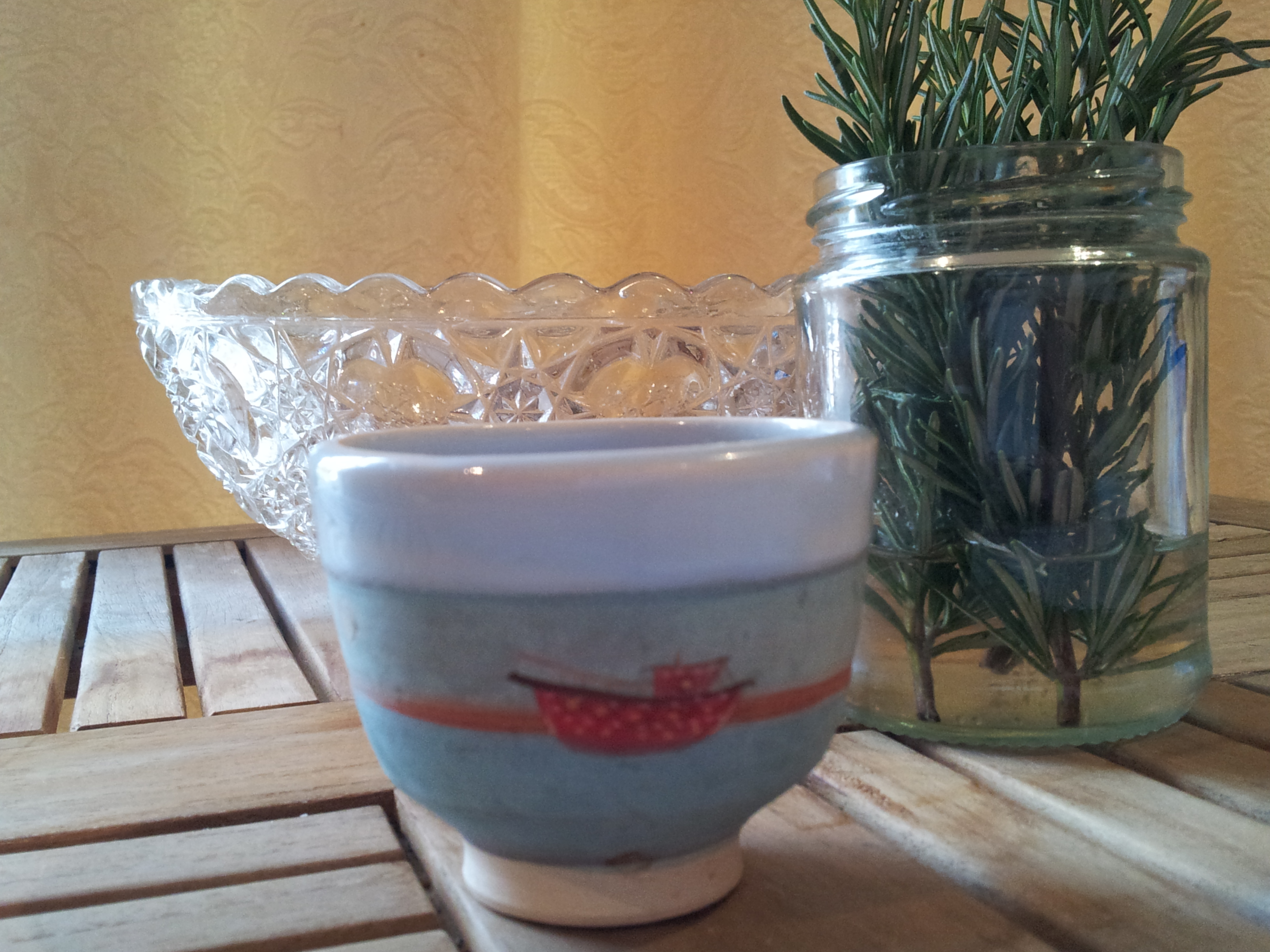 I am a very lucky lady. I came home to find a beautiful package waiting for me on my doorstep – a gift from my wonderful neighbours who are heading off on a world-wide, belated GAP year adventure. The present? A delicate, cup-sized bowl from ceramicist and textile artist Sarah Nicol. Sarah works from her studio overlooking the Malvern Hills in Worcestershire, with a garden complete with clucking chickens, fragrant flowers and beautiful birdsong. Here, with her partner Peter O’Neil, she creates not only her collection of pots, bowls and jugs, decorated with fishing boats, houses and fluffy white sheep, but she also sews up tactile cushions and doorstops, using fabric that, in many cases, has been dyed using natural and organic materials such as vegetables and leaves.