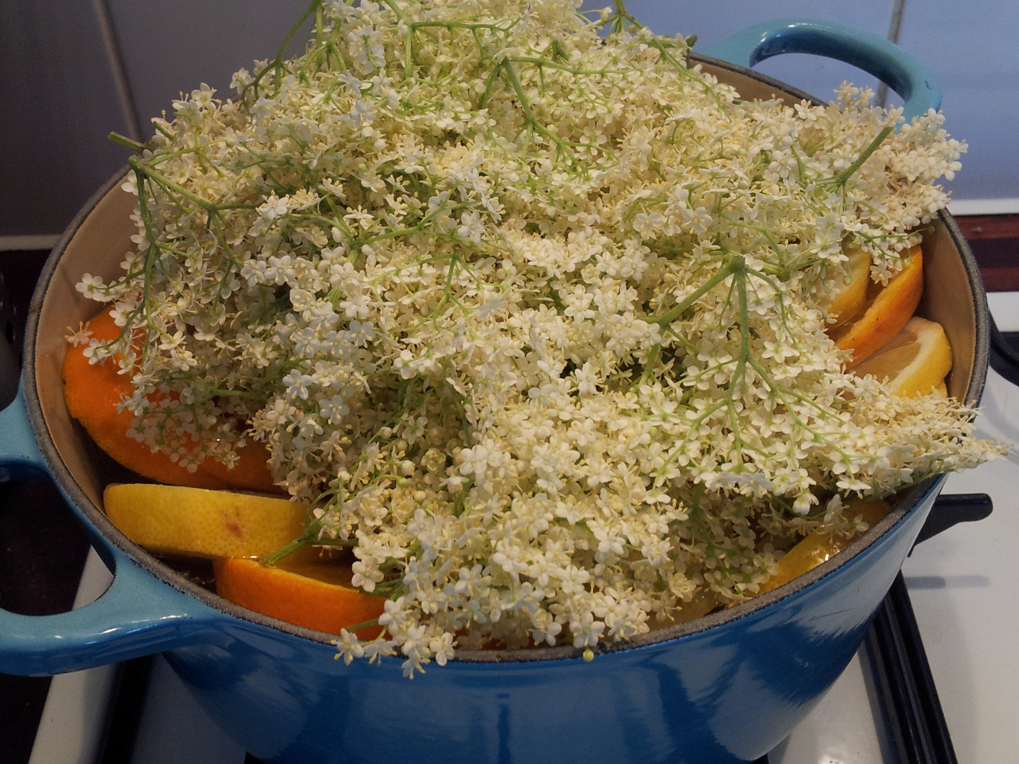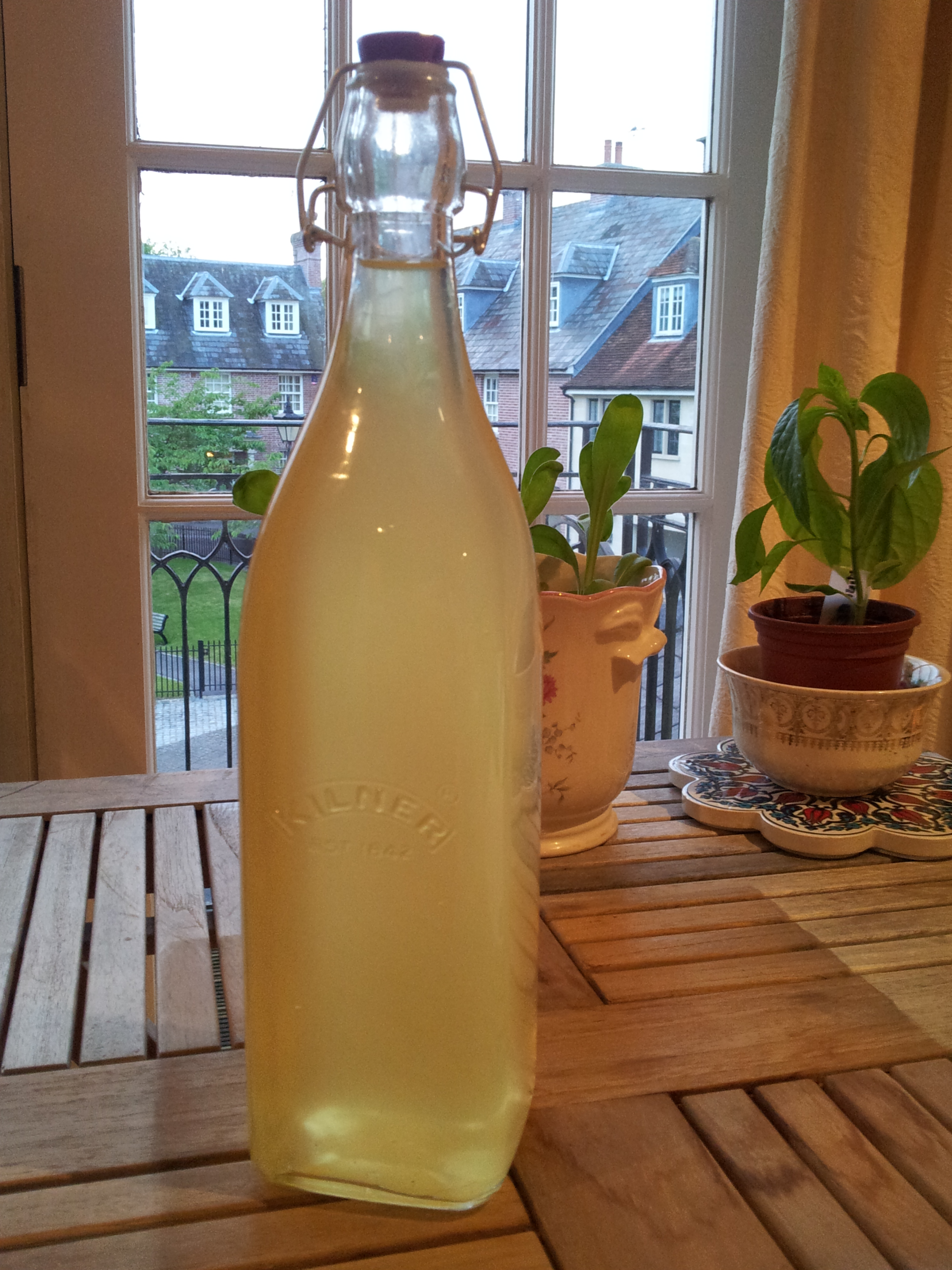 I love this time of year – hedgerows become beautifully confettied with the golden, sweet-scented blossoms of elderflower. I’ve also wanted to gather them and turn them into delicious cordials and syrups but, for some reason or other, always seem to miss the season – until now! So, at the weekend, when we had surprisingly sunny weather, I headed out to explore the local lanes and see what wonderful free bounty I could find. I looked online for recipes to try and opted for a combination of two: one by Lotte Duncan, the other by Tom Barker Bowles. The result is pretty good so far!
