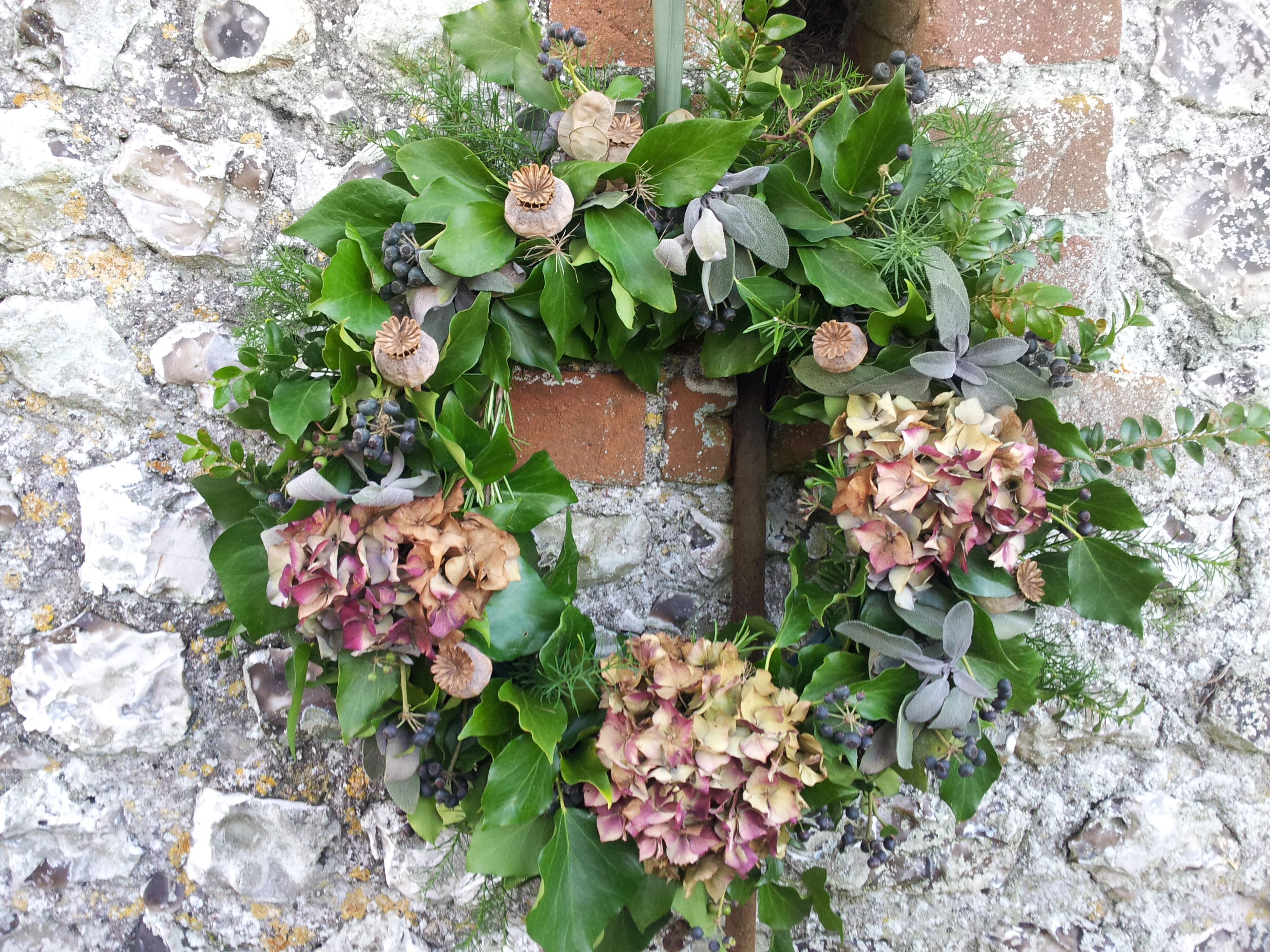 But this year, being fully settled in a wonderful rural bungalow, I decided to go to town with it. Enter the fantastically creative Sarah Moore and her team of green-fingered experts. Recently relocated to a stunning barn near Petersfield in West Sussex, Sarah was holding a day of wreath-making sessions where all the tree ivy, holly, teasels and rosemary you could want, were provided – alongside enamel mugs of rich warming hot chocolate.