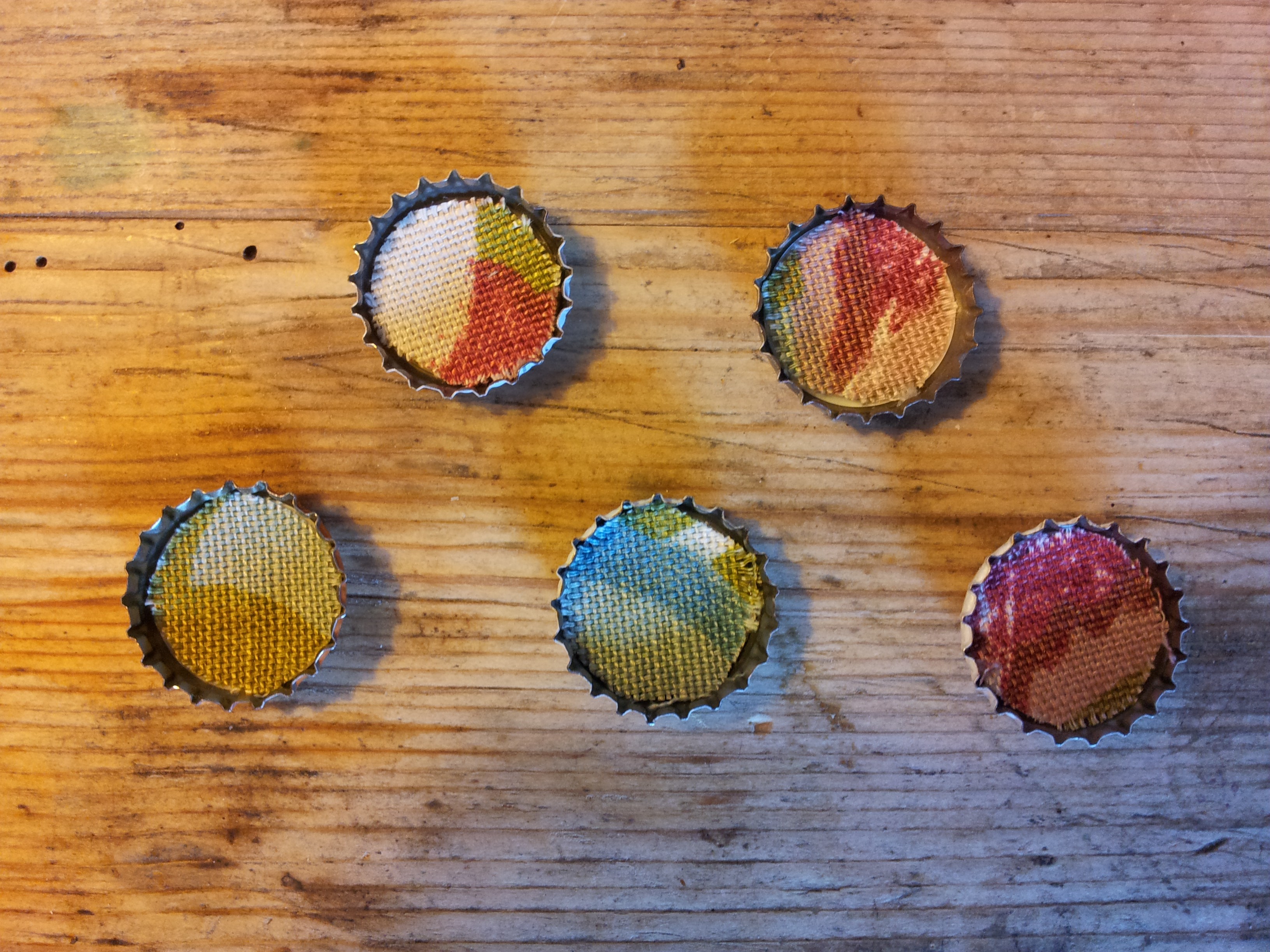 These are one of my favourite makes. In just a few minutes, you can transform something ordinary (bottle tops) into little works of art. And it’s a great way to use up those tiny remnants of favourite fabrics, too.