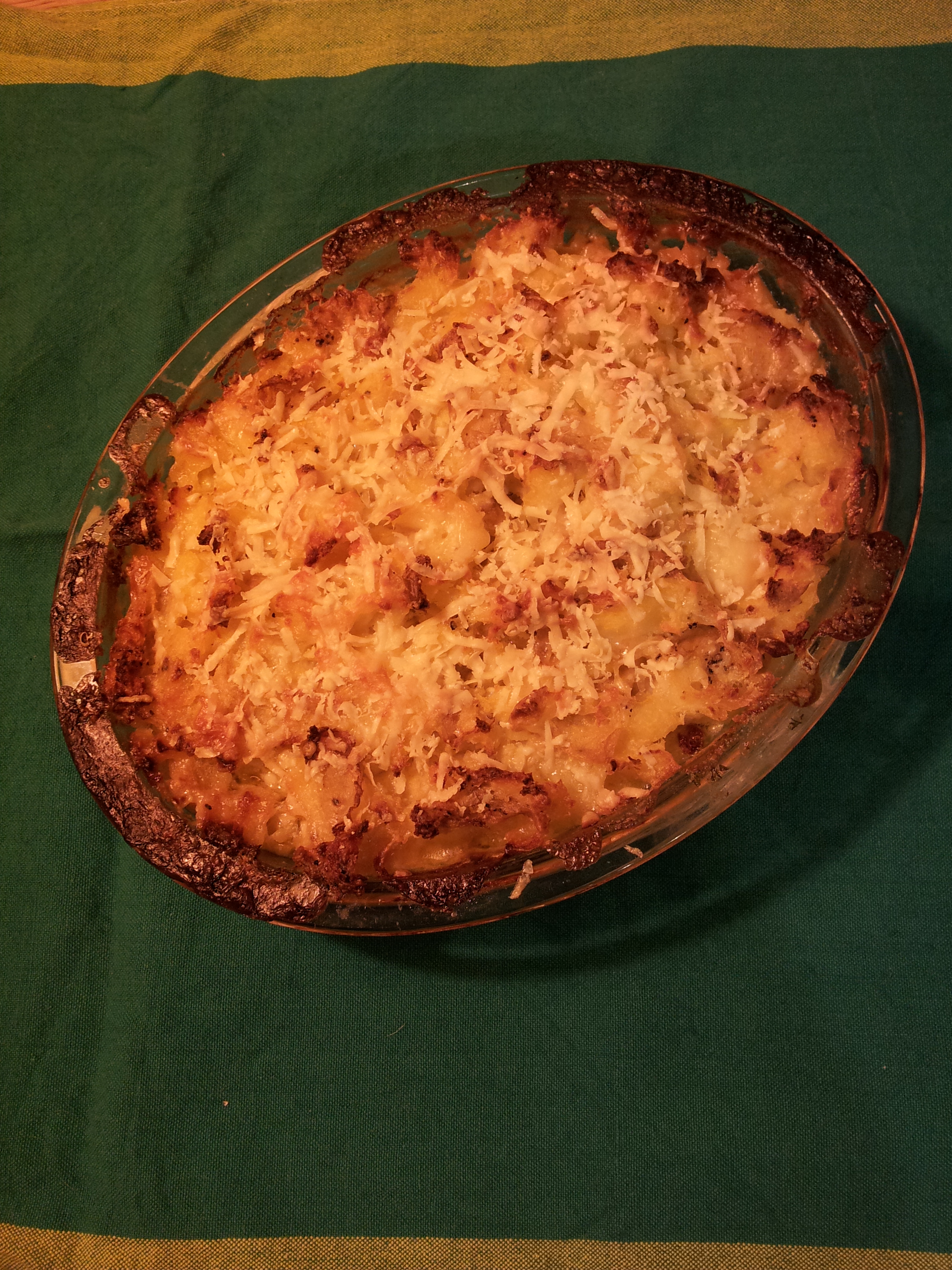 4. Boil the potatoes, until soft, then mash and season, to taste (I added butter to my mash for a creamier finish). Spread over the fish dish, sprinkle with a generous amount of grated cheese and cook for 40 minutes at 180C/Gas mark 4.
